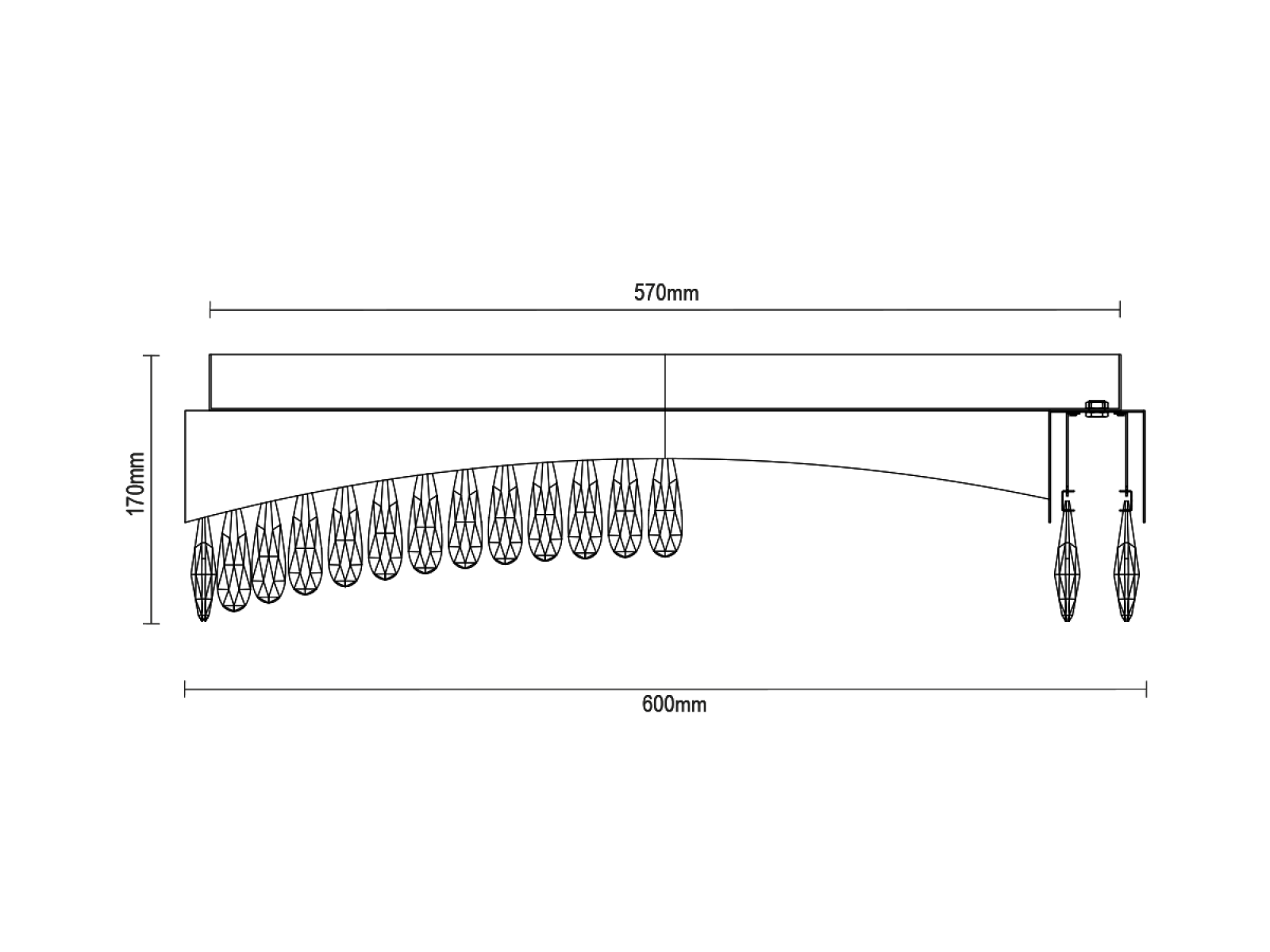 L'apparecchio è realizzato in metallo di acciaio inossidabile di alta qualità con finitura pregiata e completato da cristalli tagliati con precisione che migliorano sia la riflessione che la rifrazione della luce. La moderna tecnologia di lavorazione garantisce la stabilità a lungo termine del materiale e la conservazione dell'aspetto estetico.