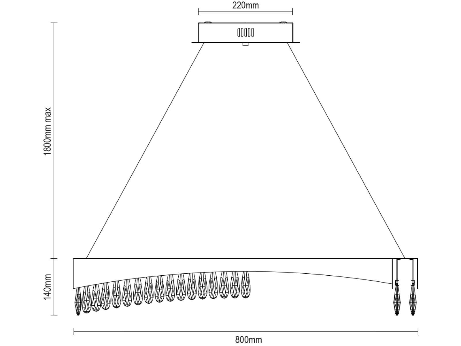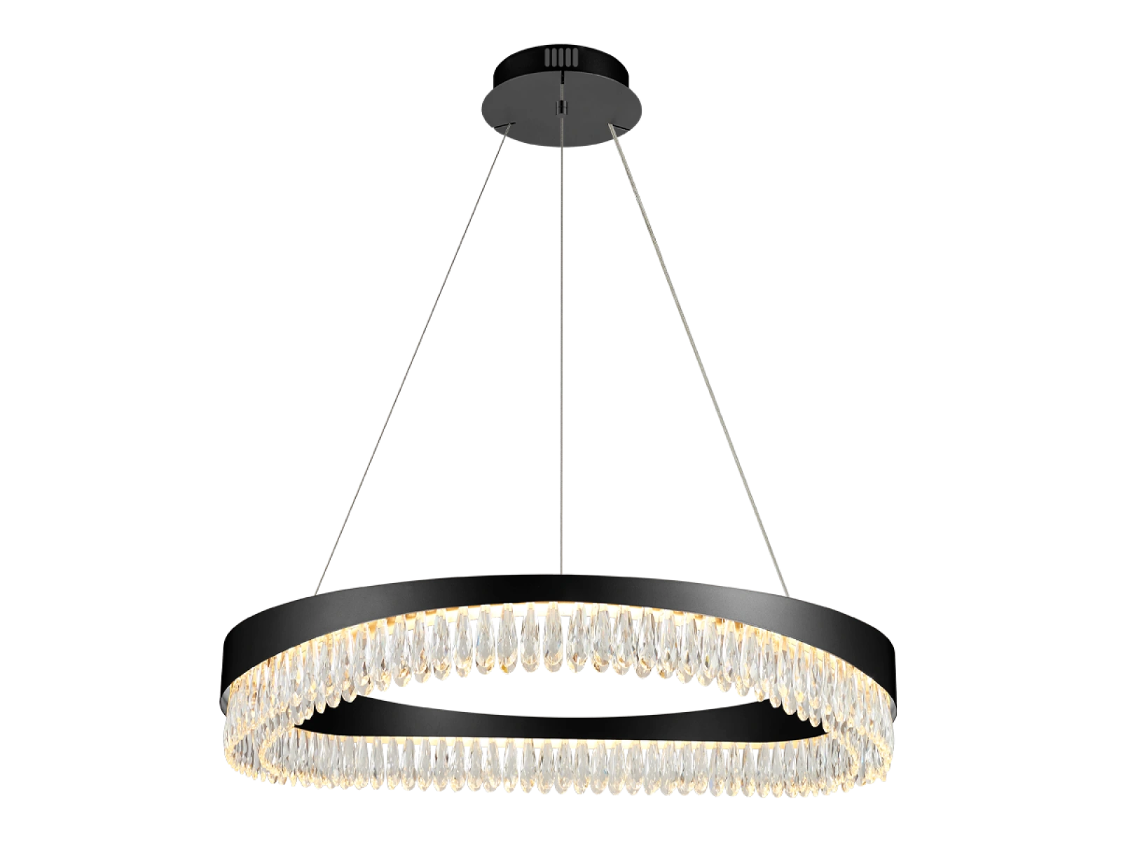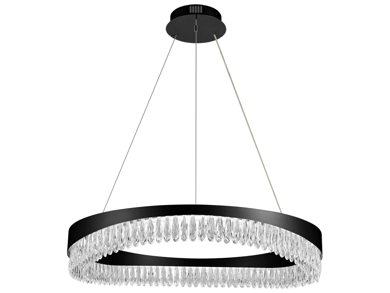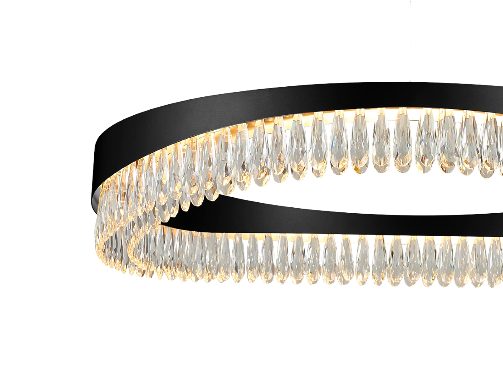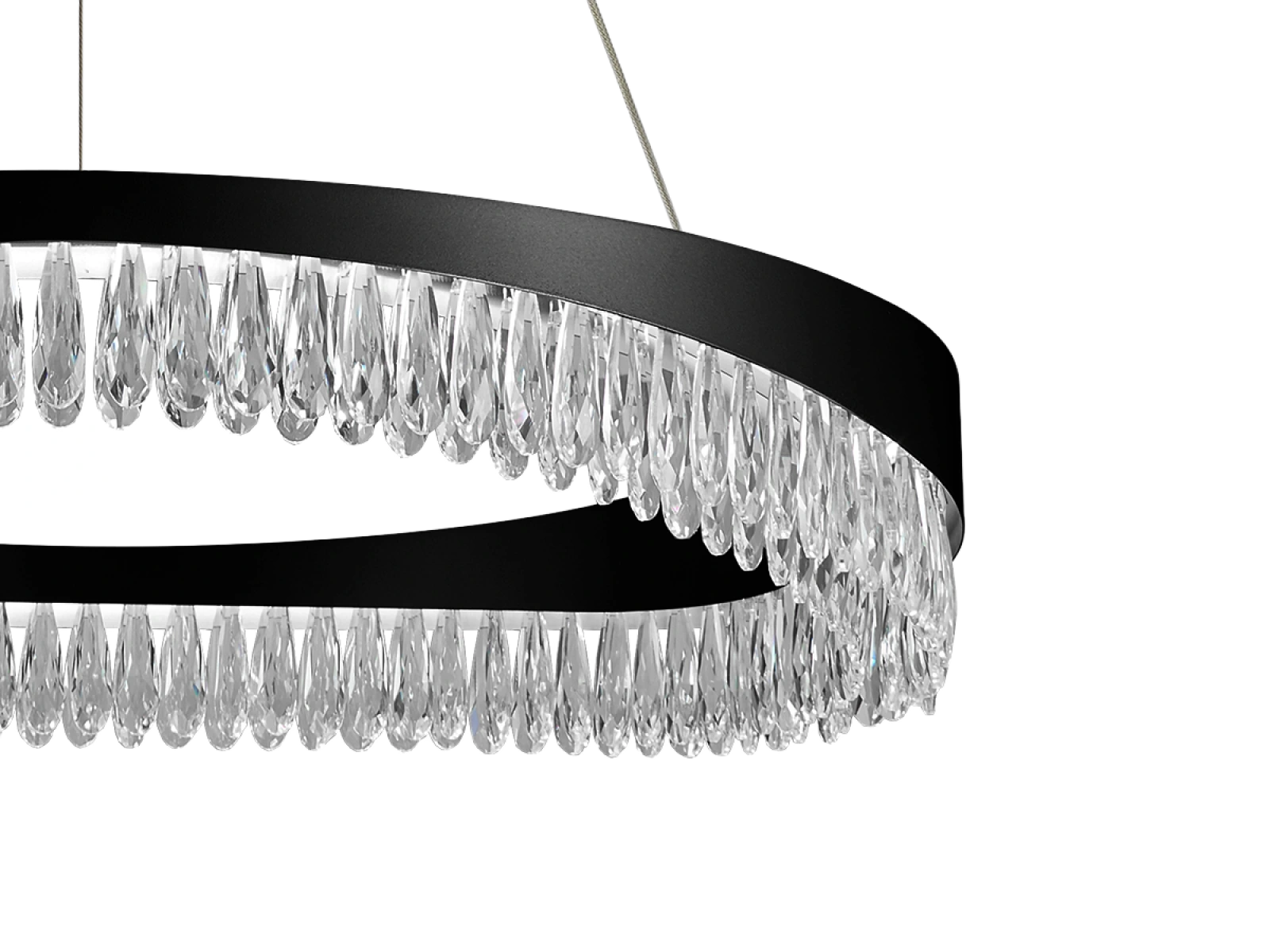 La finitura metallica in acciaio inox dell'apparecchio, con finiture di pregio, è completata da dettagliati cristalli tagliati che accentuano la rifrazione e la riflessione della luce. La moderna lavorazione garantisce la stabilità del materiale e la sua qualità estetica anche dopo un uso prolungato.