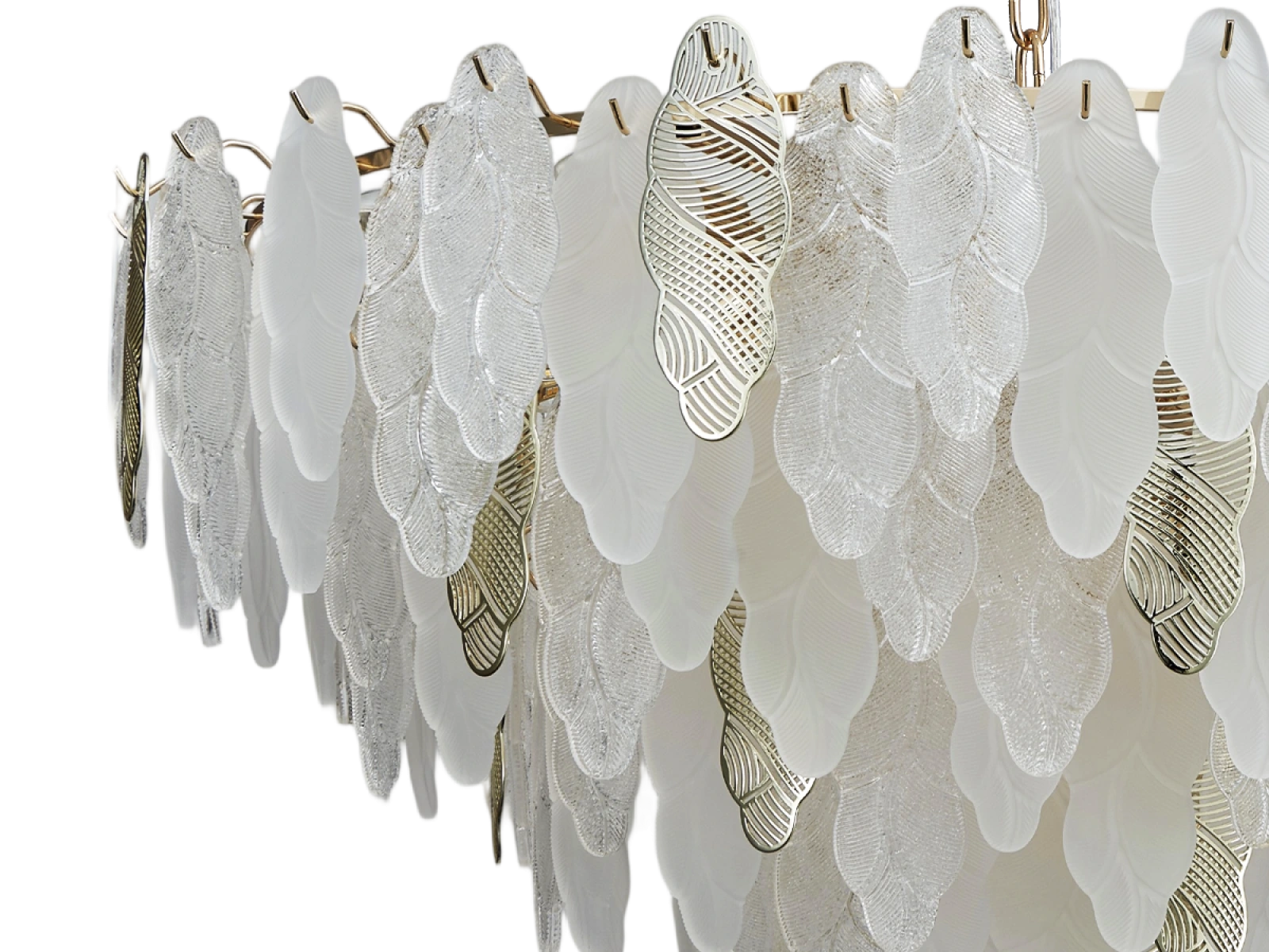 La struttura raffinata degli elementi in vetro combinata con dettagli decorativi in metallo sottolinea il carattere lussuoso e sofisticato di questa collezione.
