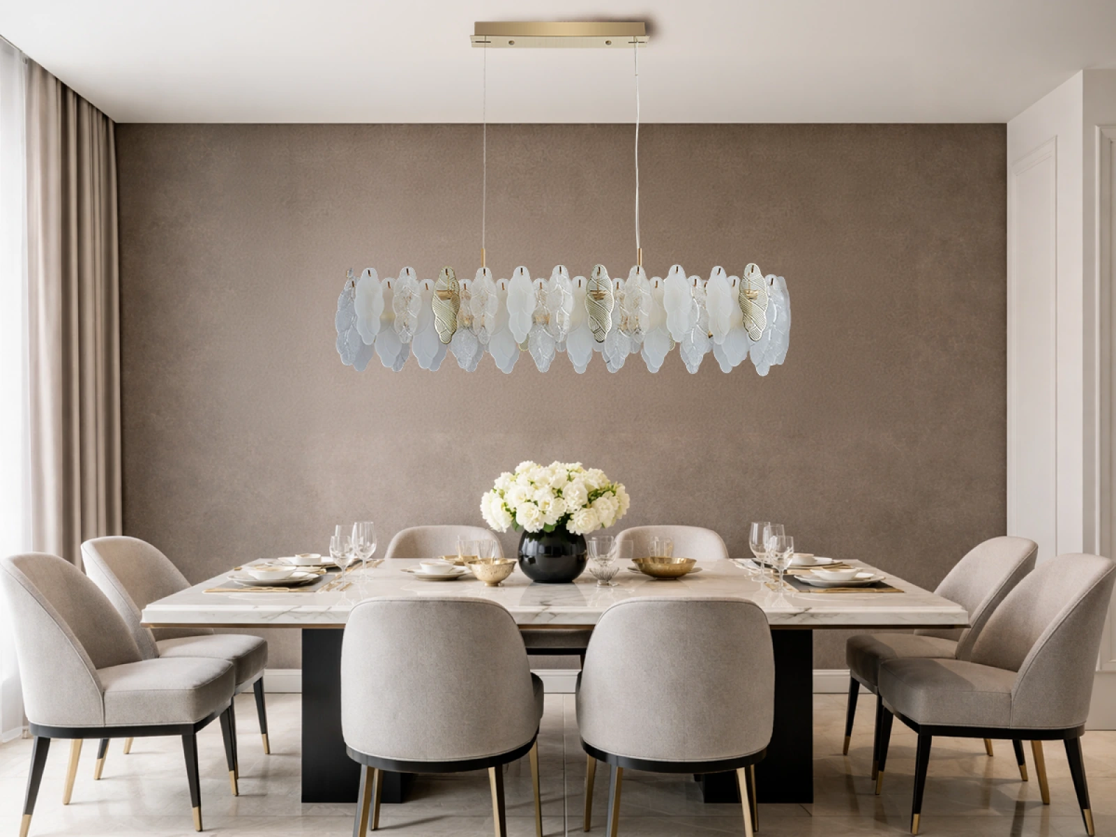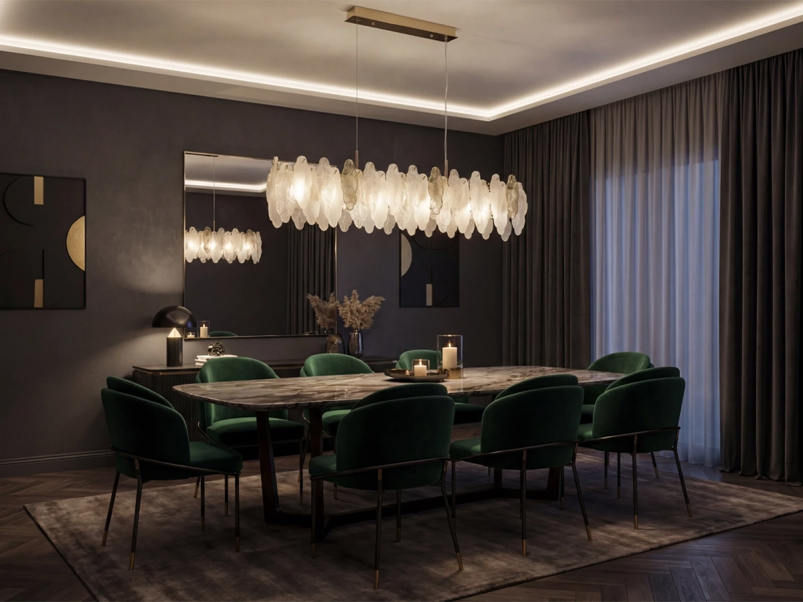L'apparecchio a sospensione CHOREO di VIZARDI è un'elegante illuminazione di design con un carattere decorativo distintivo. La precisa disposizione dei singoli elementi crea una composizione armoniosa con un effetto luminoso unico e aggiunge un accento visivo distintivo allo spazio. L'apparecchio è adatto a soggiorni, sale da pranzo, camere da letto e interni di rappresentanza.