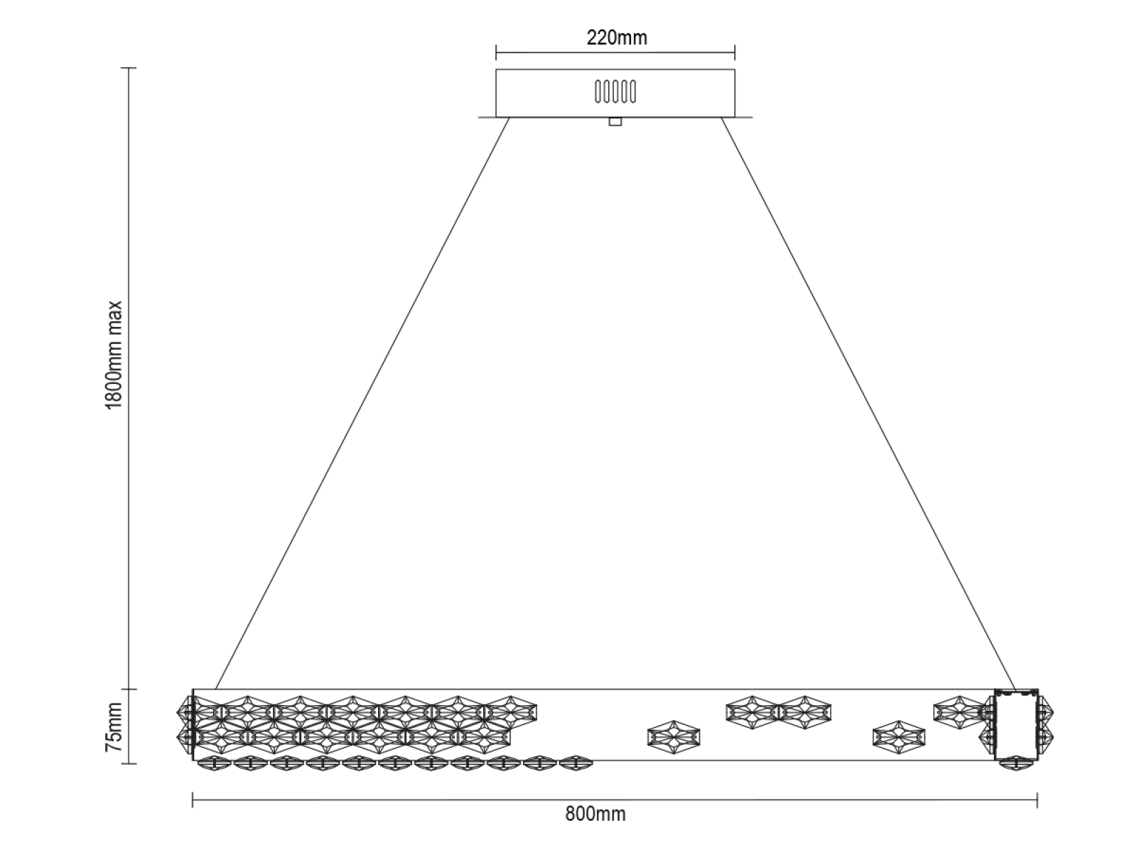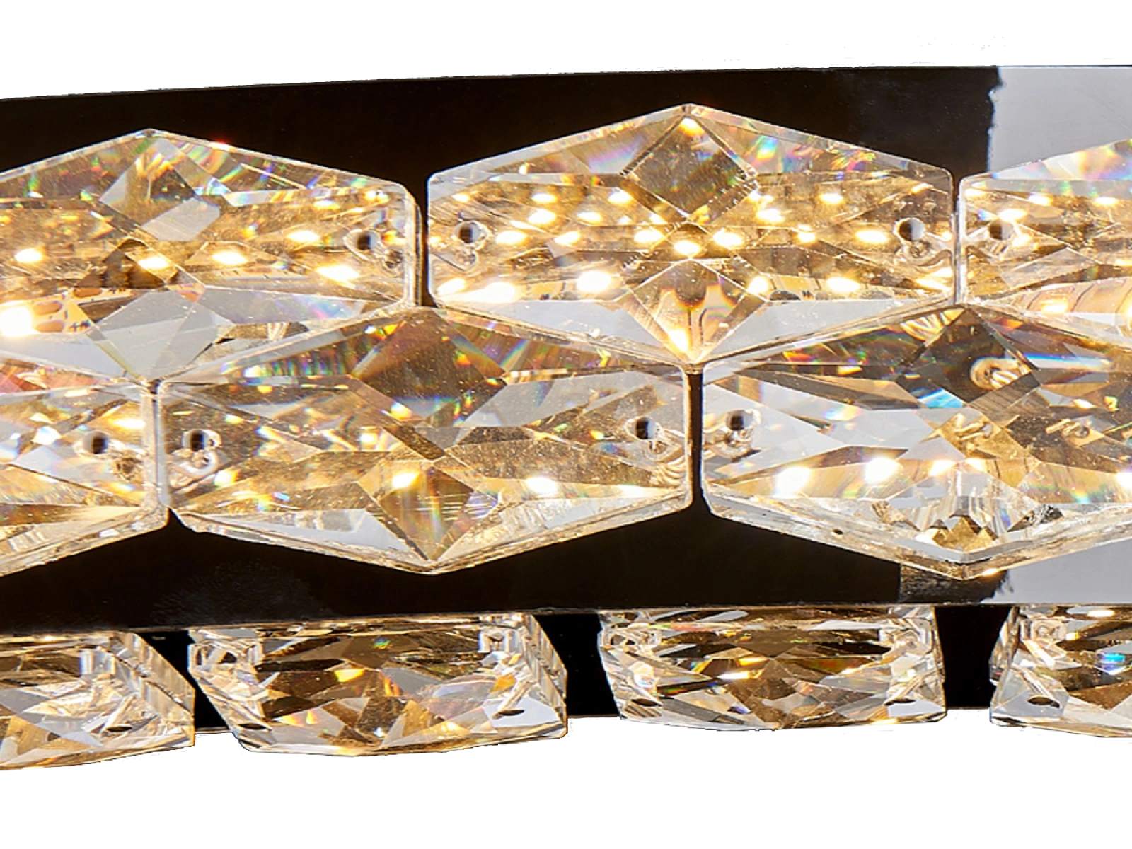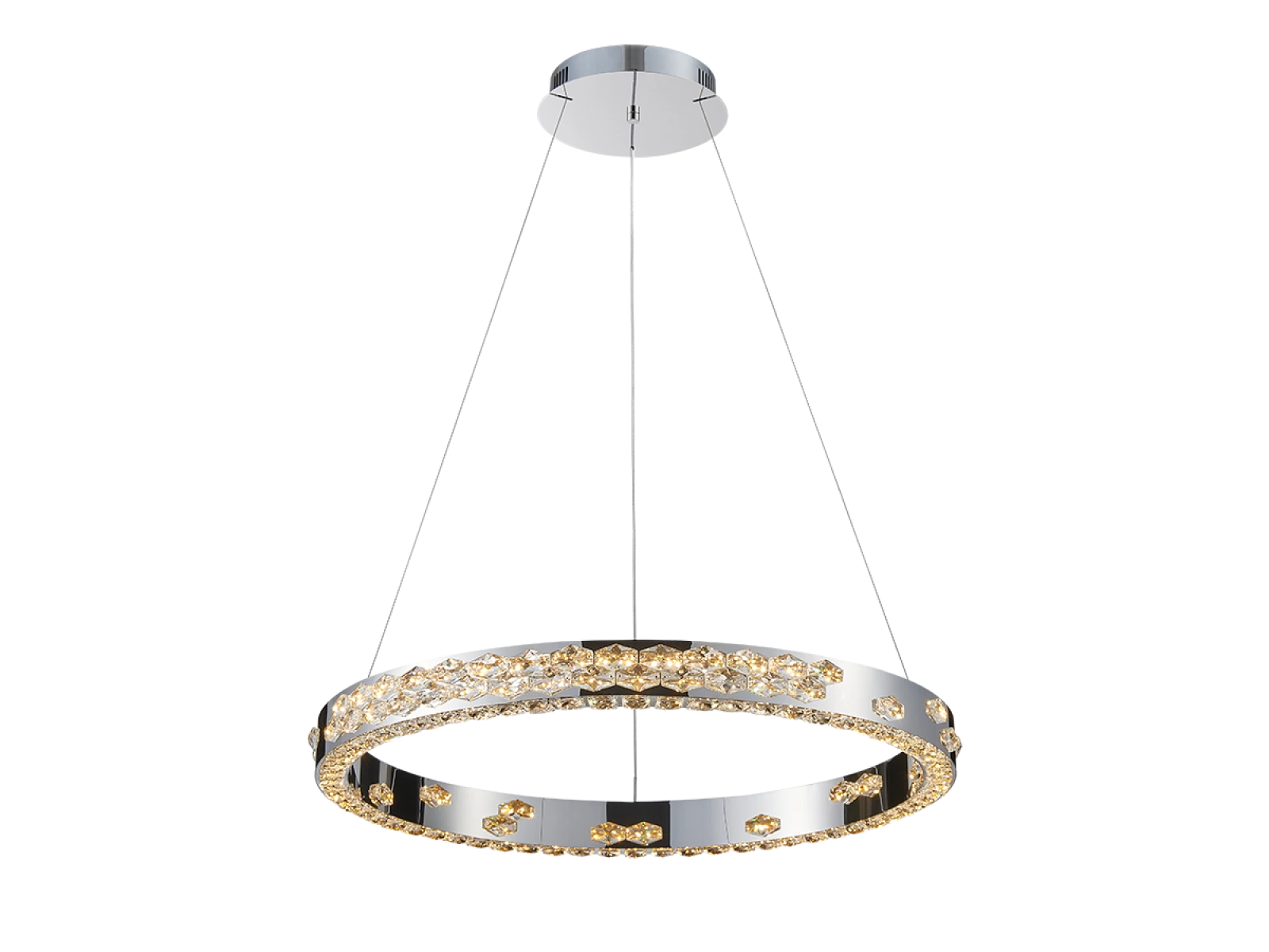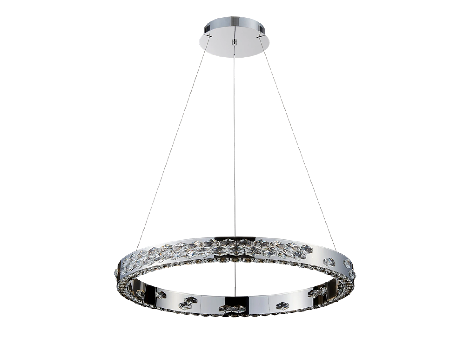 L'apparecchio combina metallo in acciaio inossidabile con finitura cromata e cristalli tagliati con precisione che lavorano efficacemente con la luce, aumentandone sia la riflessione che la rifrazione. La lavorazione di qualità garantisce una lunga durata e il mantenimento dell'aspetto estetico.