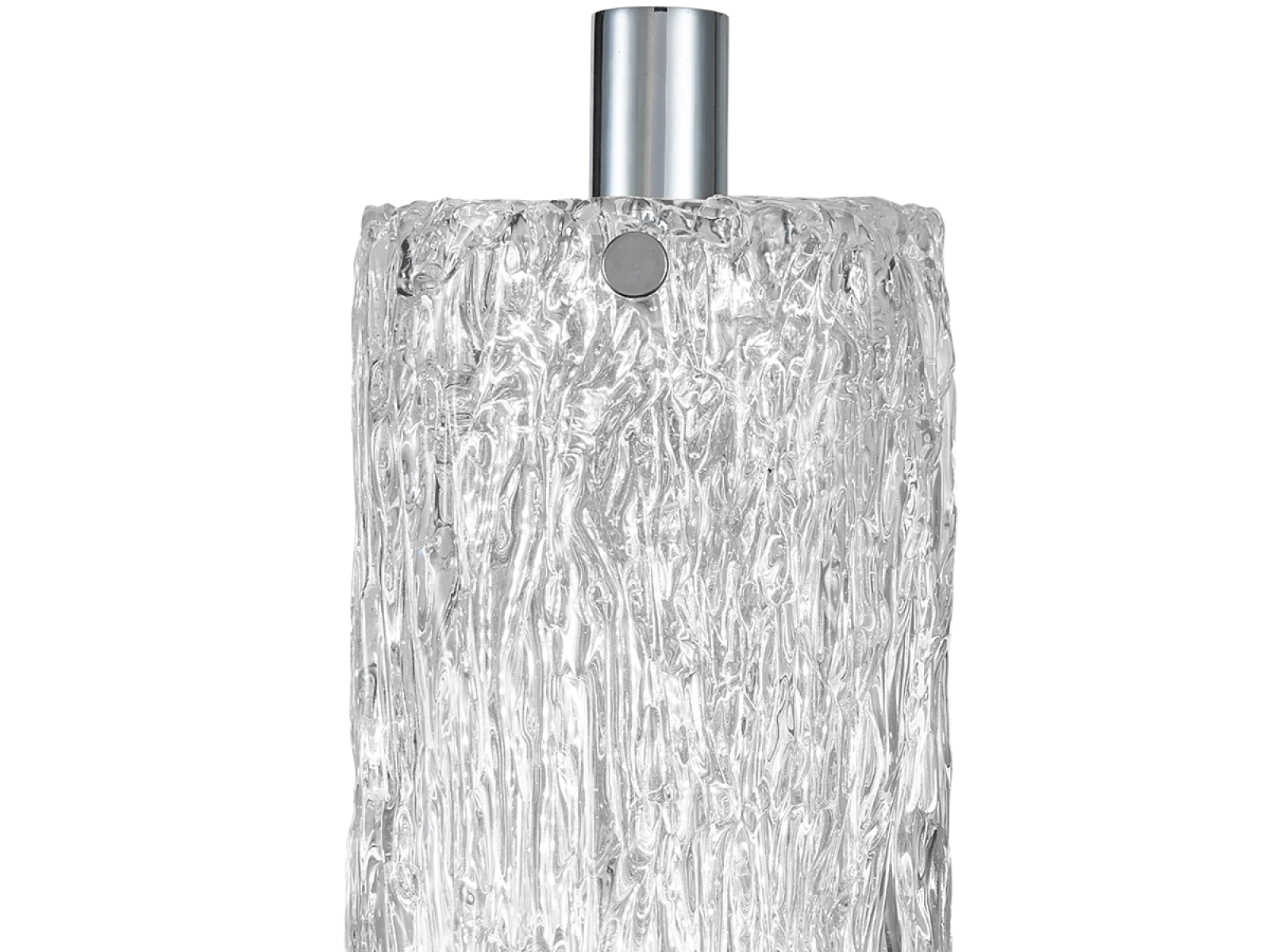 materiali pregiati: vetro modellato a mano con texture distintiva e metallo con finitura cromata