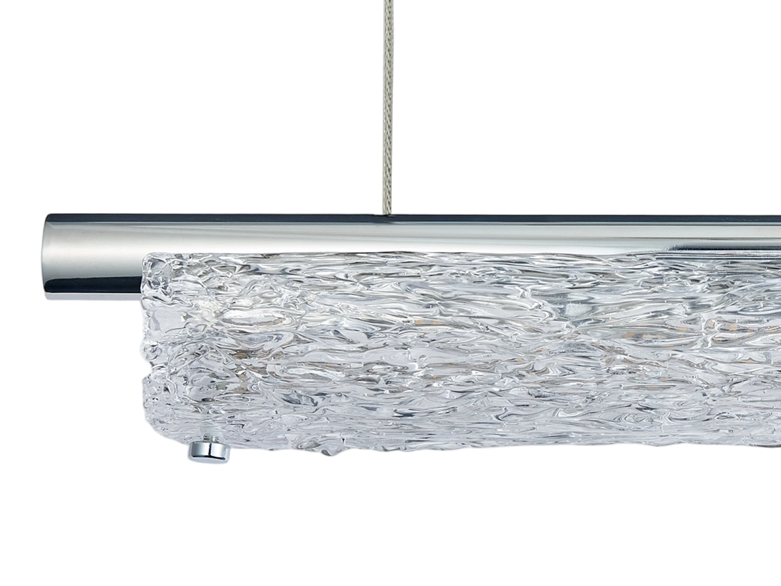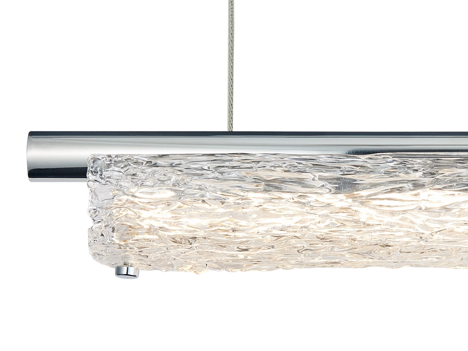L'apparecchio è realizzato in metallo di alta qualità in acciaio inox con finitura cromata, che garantisce una lunga durata, stabilità e un aspetto lussuoso. Gli elementi in vetro con superficie strutturata a forma di barretta assicurano una diffusione della luce uniforme e piacevole.