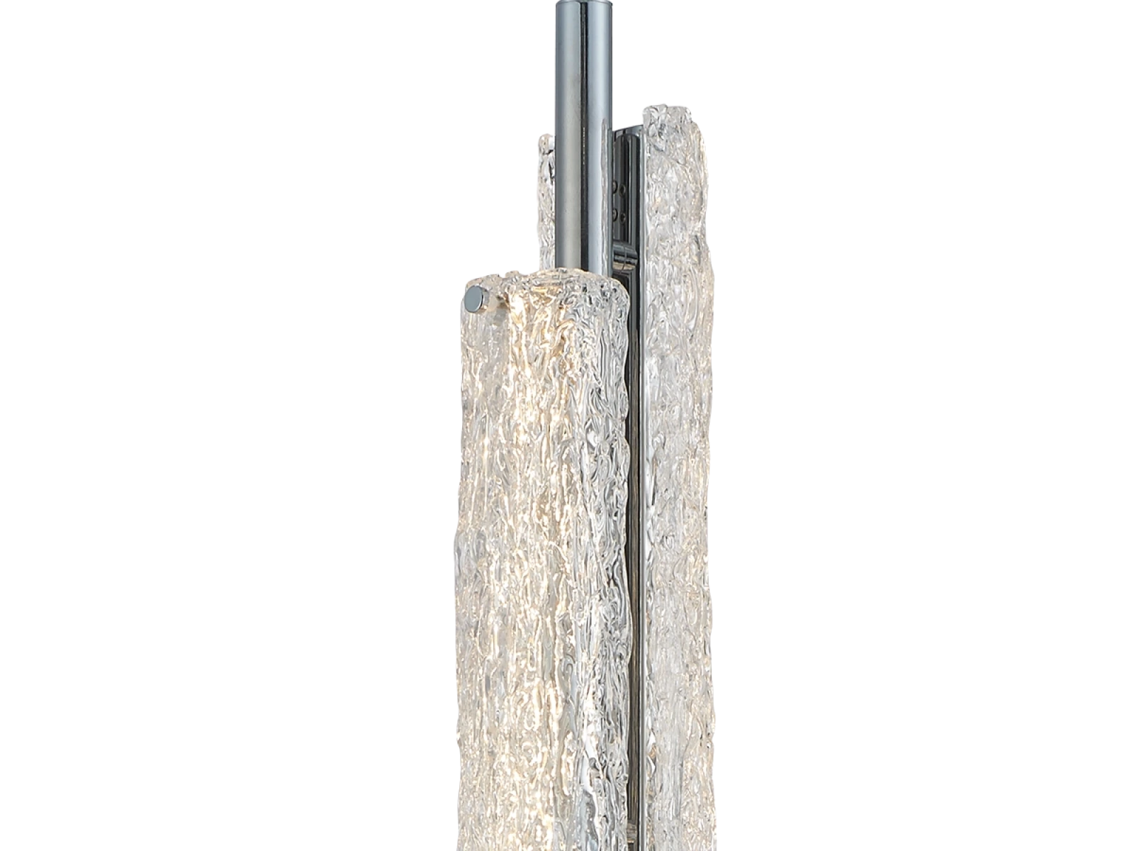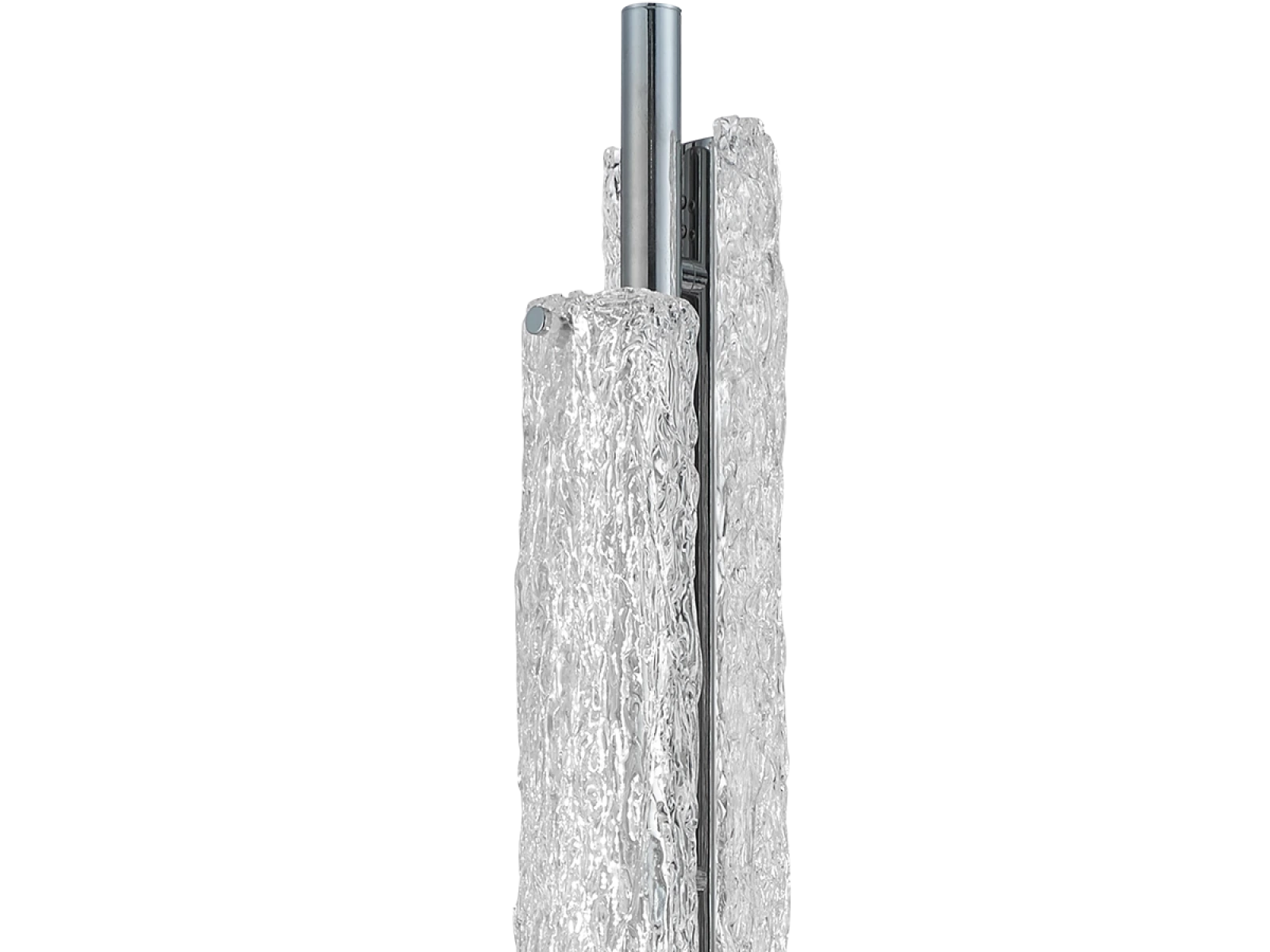 materiali pregiati: vetro modellato a mano con texture distintiva e metallo con finitura cromata