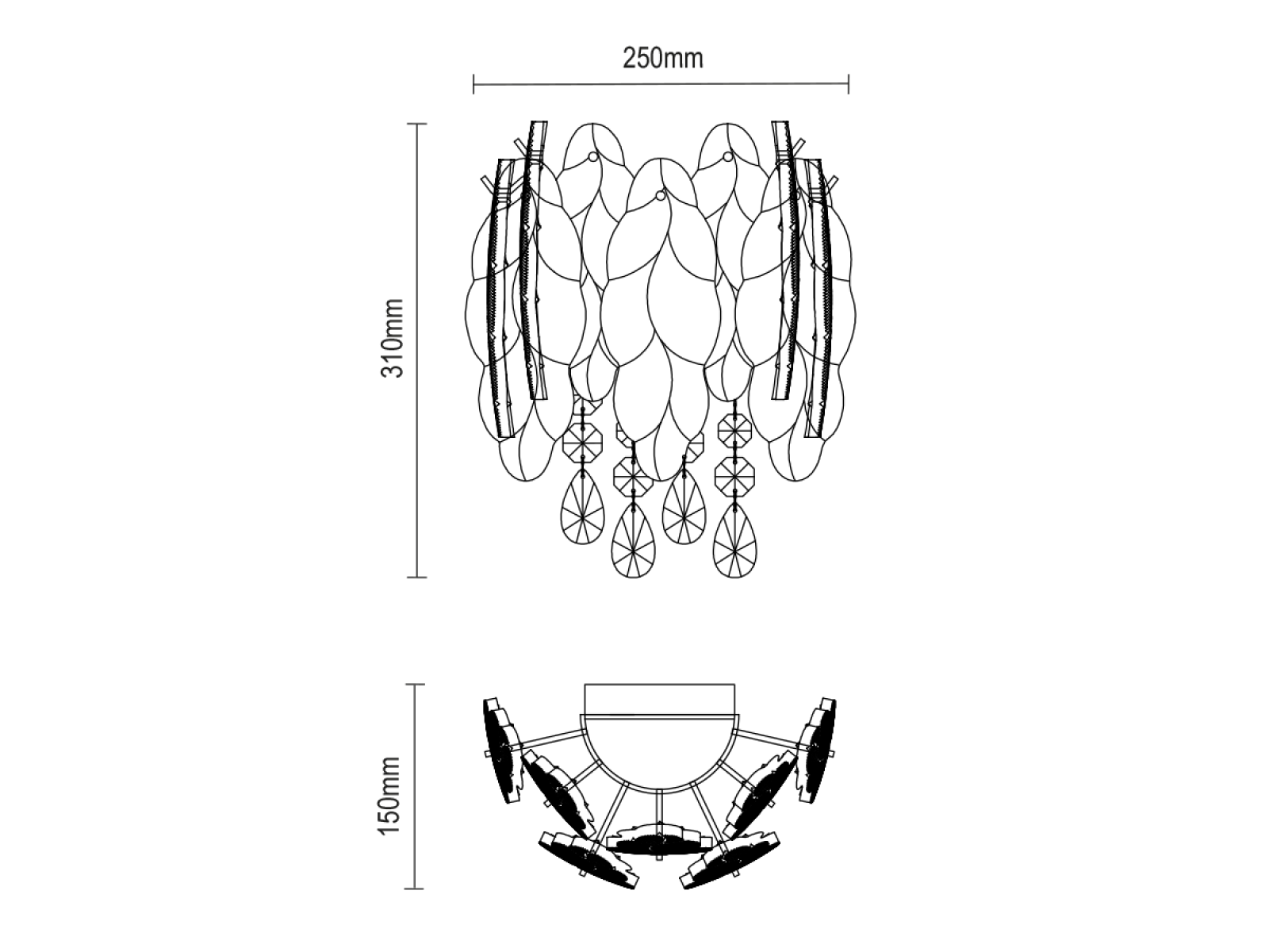 combinazione di struttura in metallo ed elementi in vetro e cristallo tagliato