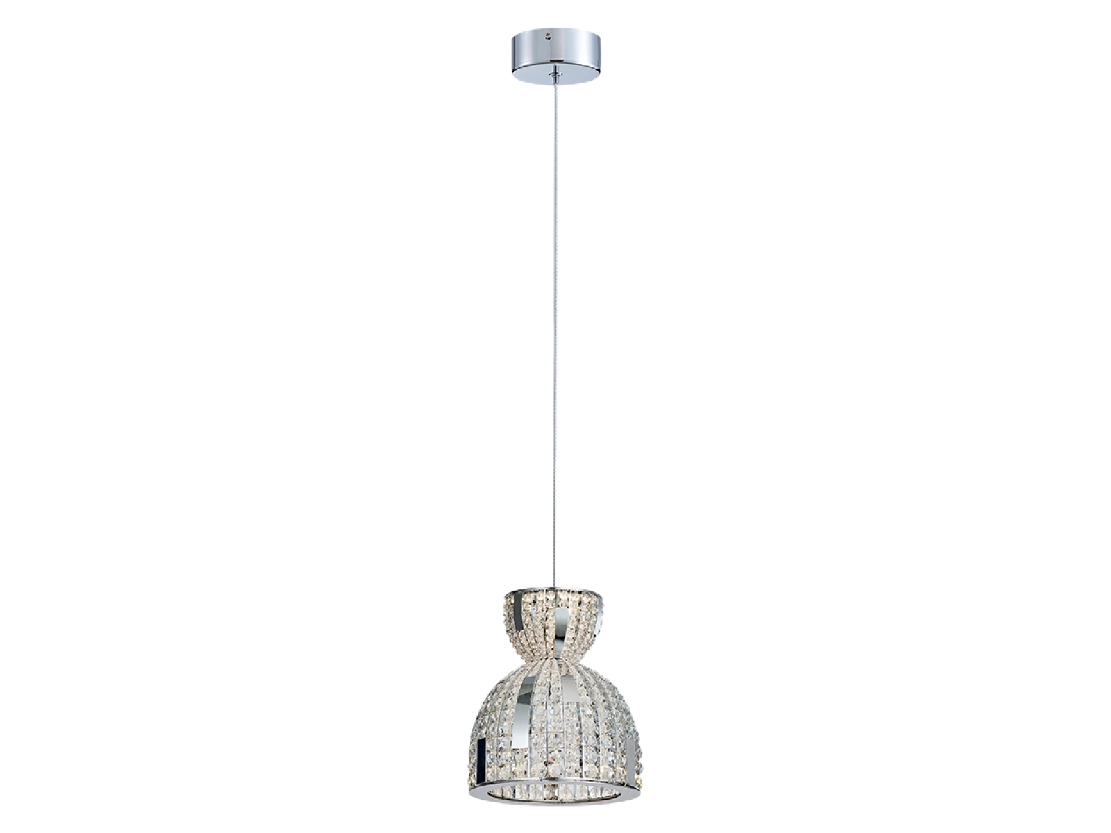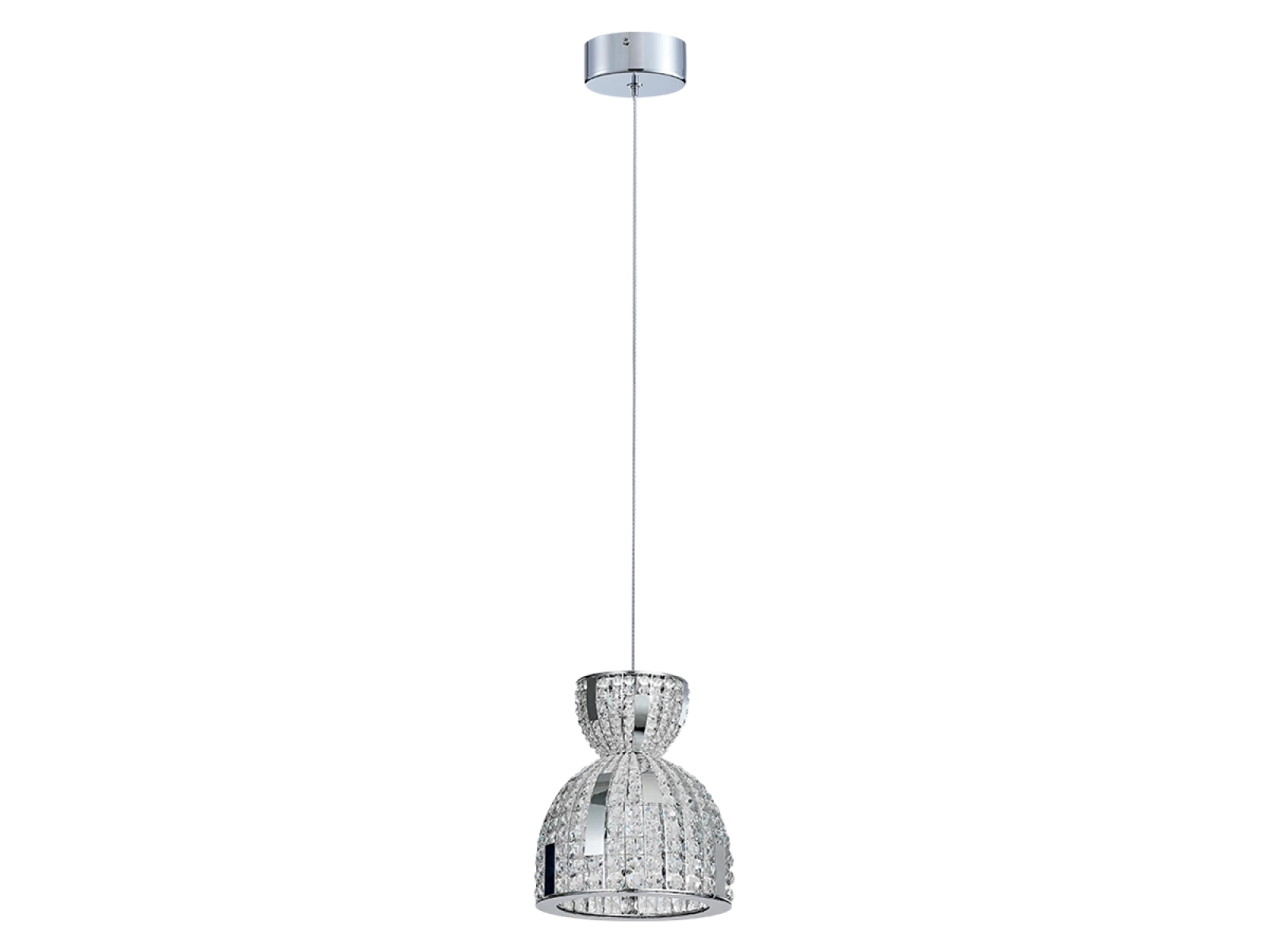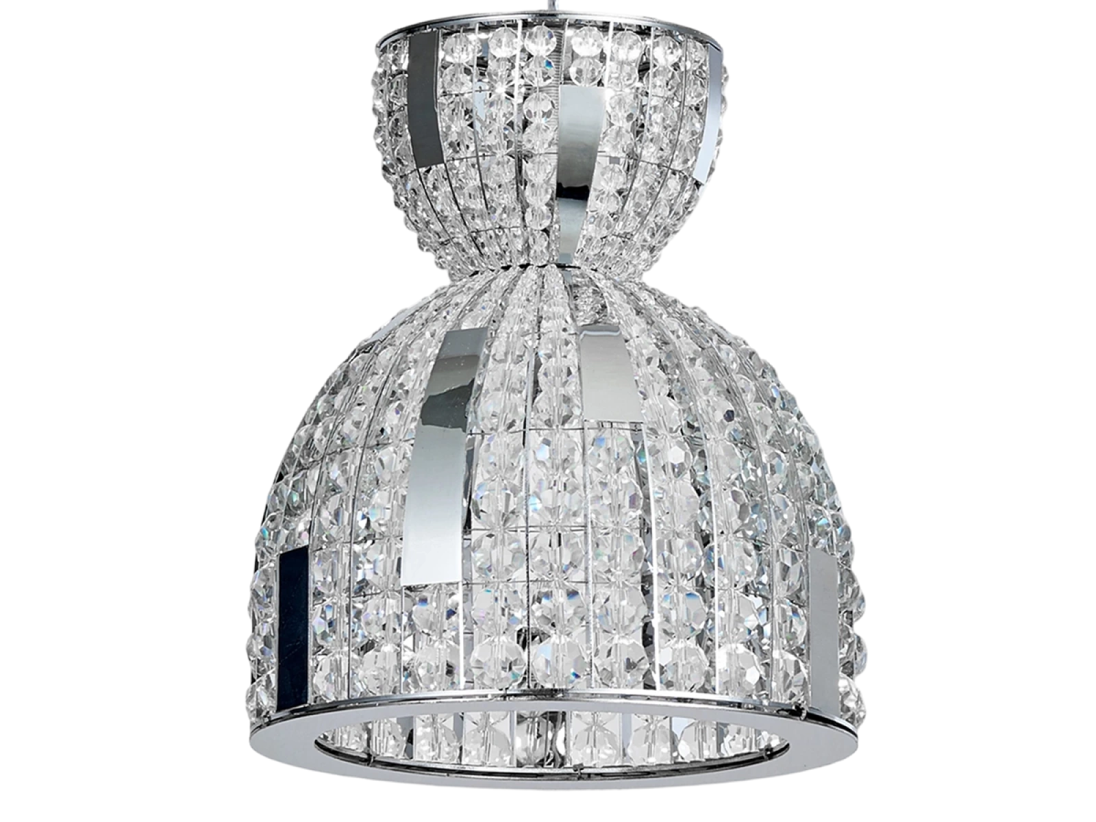 La struttura è realizzata in acciaio inox e completata da cristalli tagliati che assicurano un'intensa rifrazione e riflessione della luce. Grazie alla lavorazione di alta qualità, l'apparecchio mantiene il suo aspetto estetico e la sua stabilità anche in caso di utilizzo prolungato.