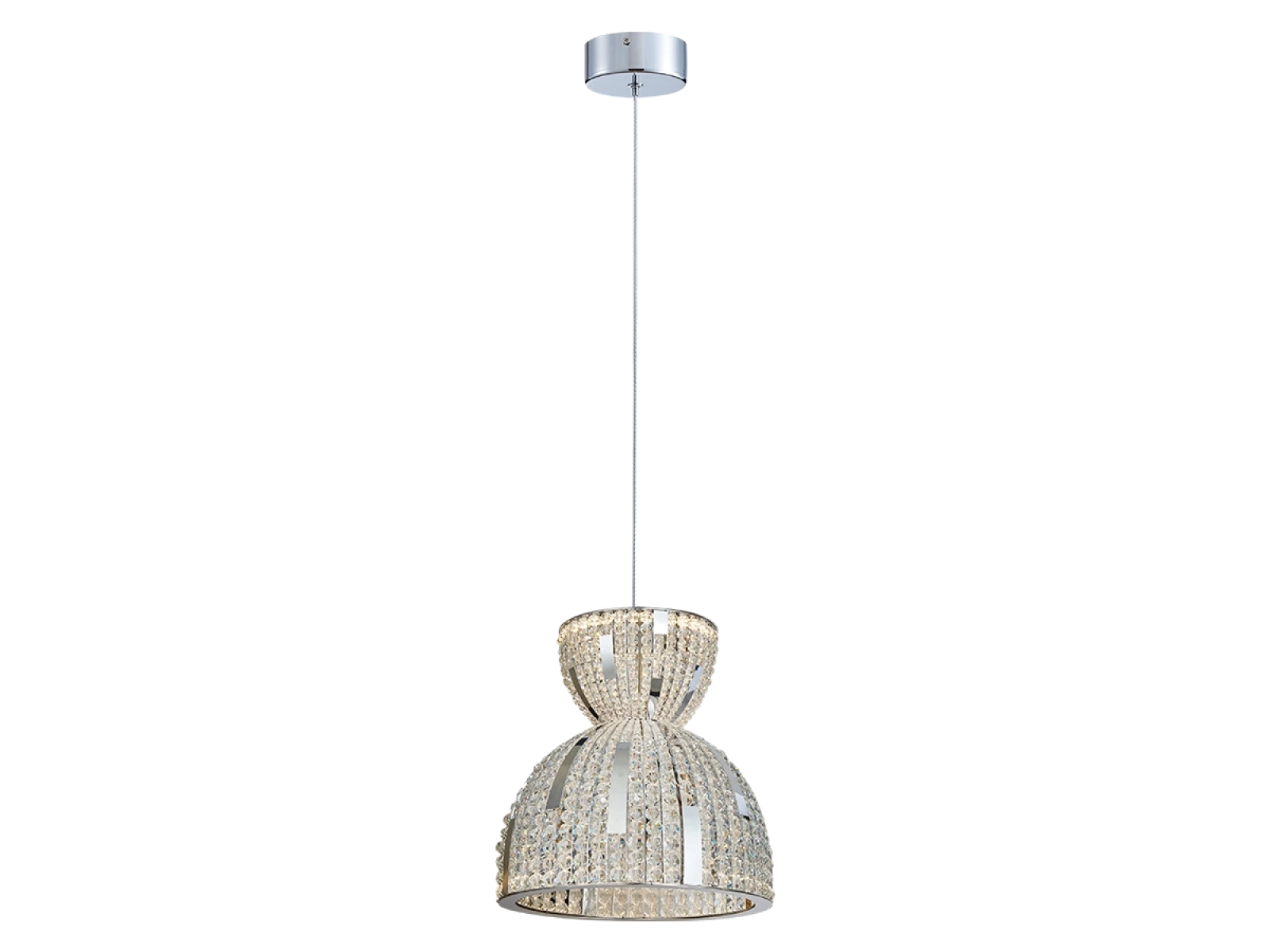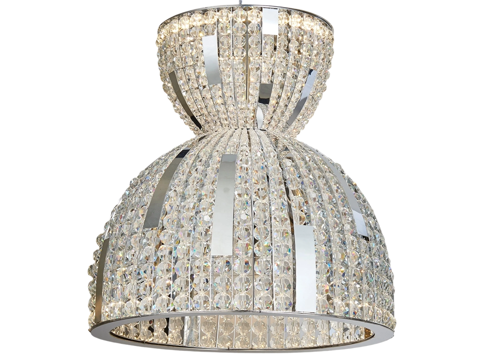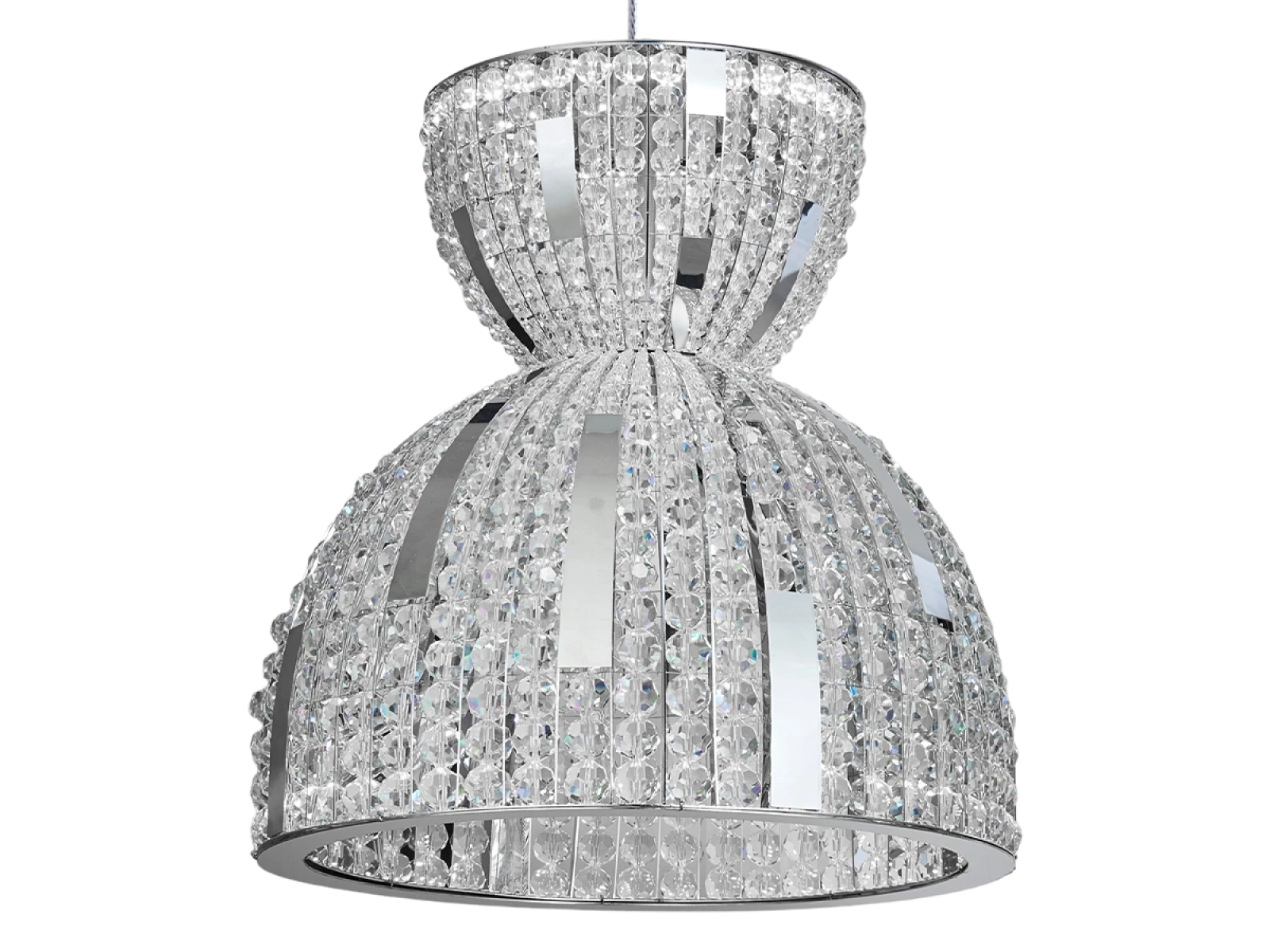 La struttura è realizzata in acciaio inox e completata da cristalli tagliati che assicurano un'intensa rifrazione e riflessione della luce. Grazie alla lavorazione di alta qualità, l'apparecchio mantiene il suo aspetto estetico e la sua stabilità anche in caso di utilizzo prolungato.