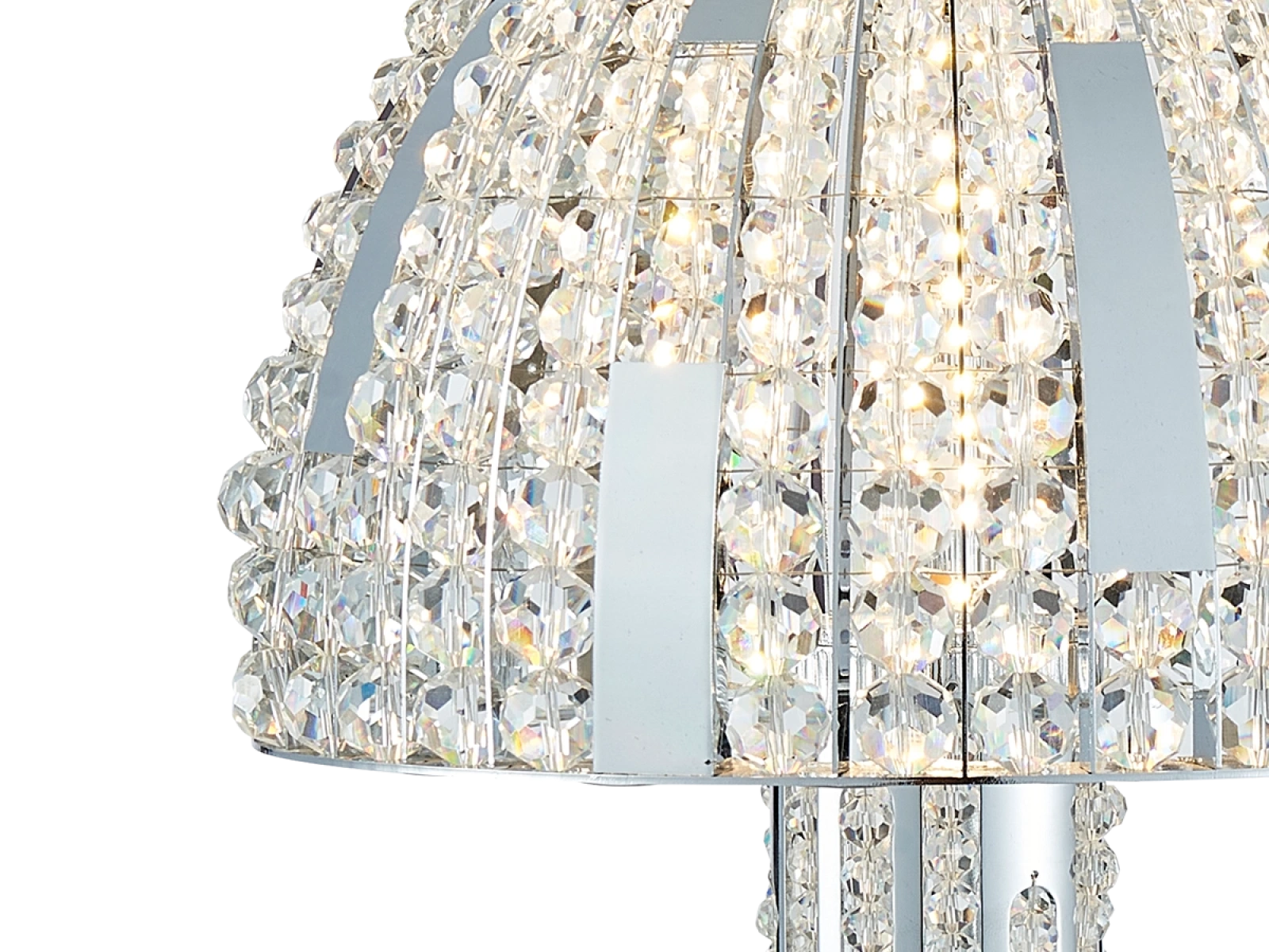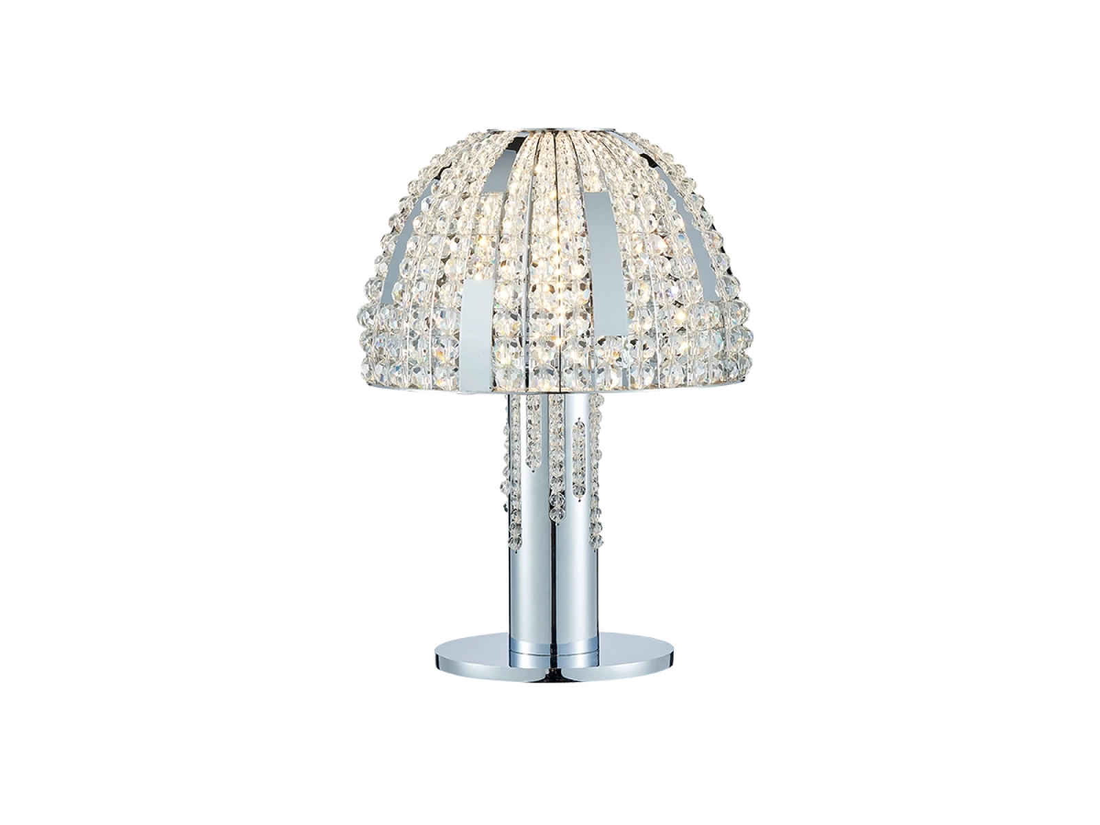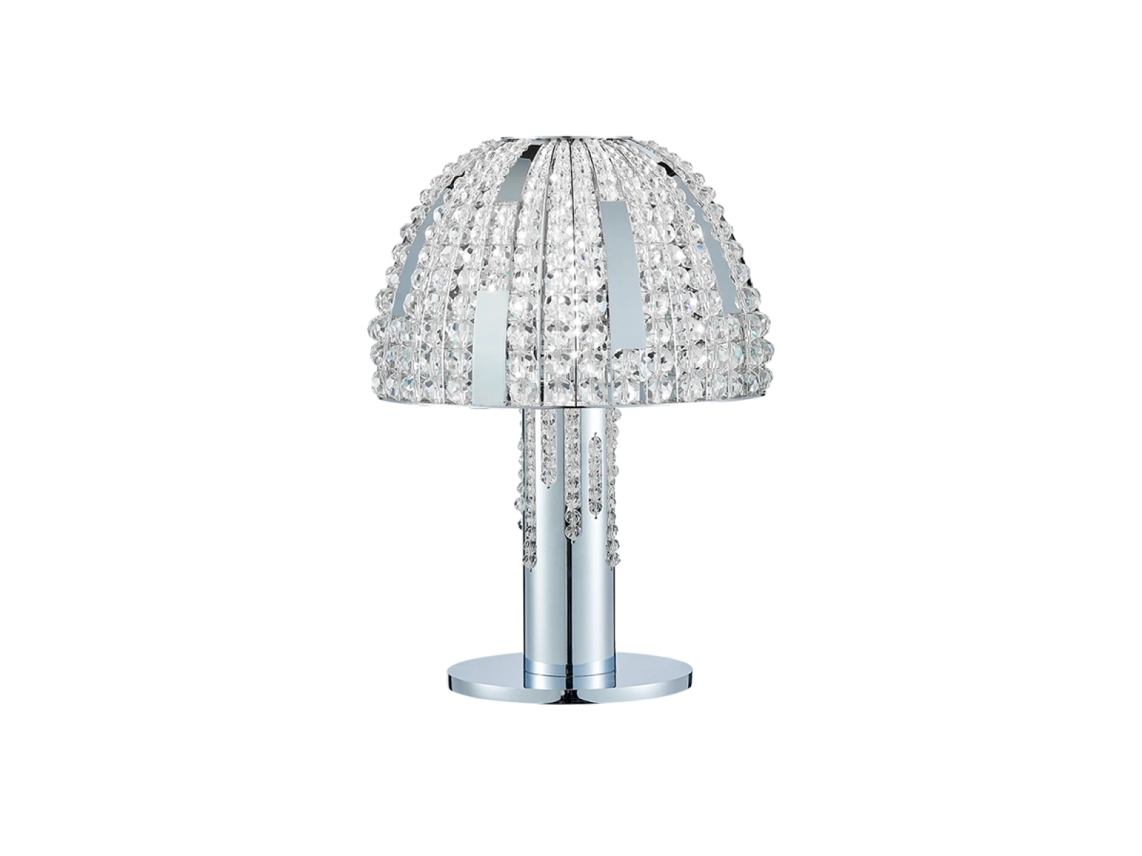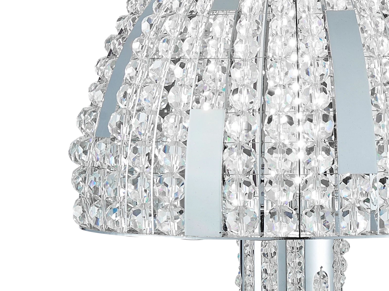 La struttura è realizzata in acciaio inox e completata da cristalli tagliati che assicurano un'intensa rifrazione e riflessione della luce. Grazie alla lavorazione di alta qualità, l'apparecchio mantiene il suo aspetto estetico e la sua stabilità anche in caso di utilizzo prolungato.