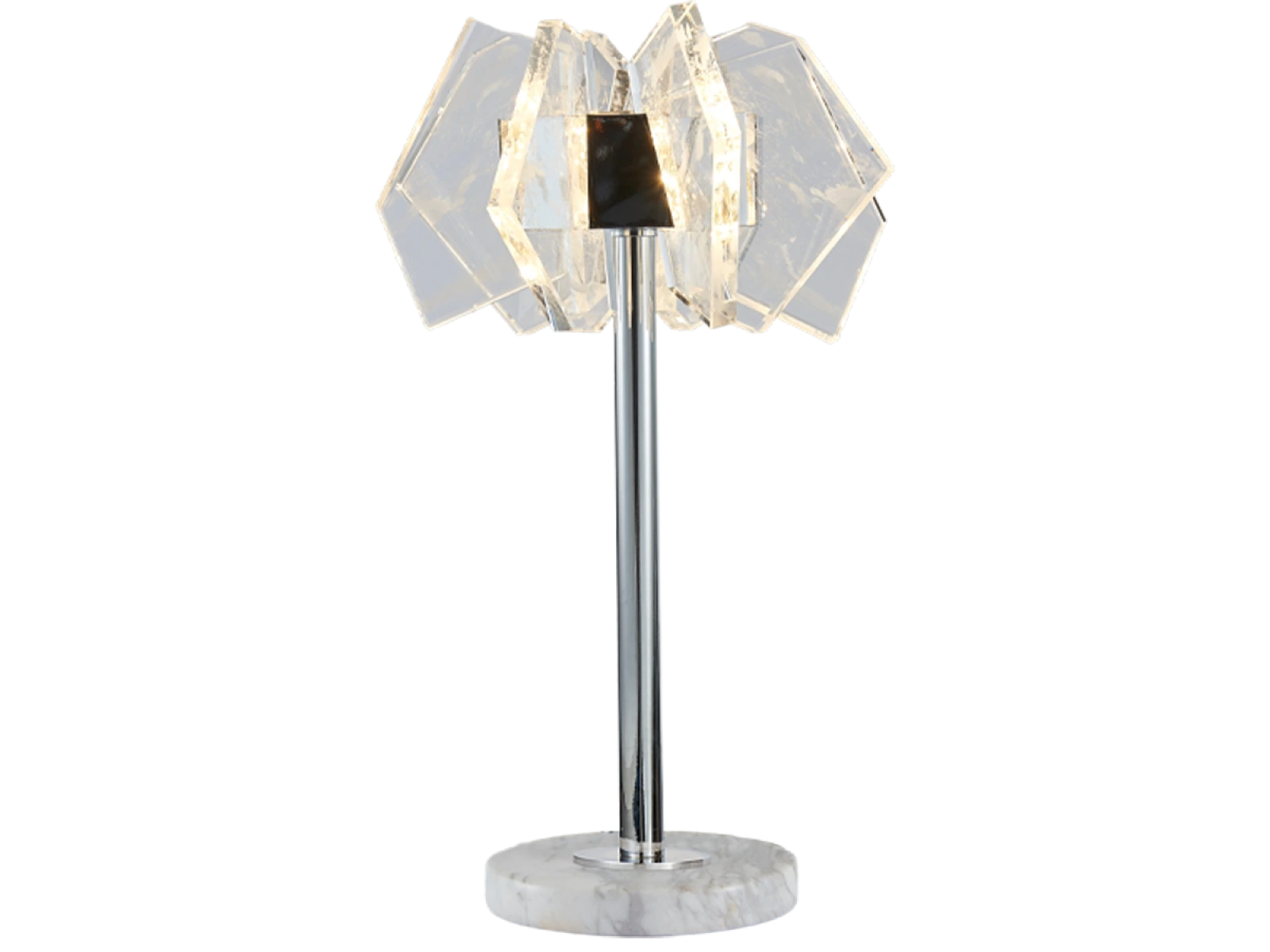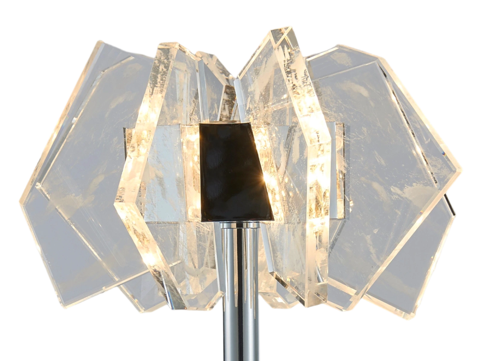 La struttura è realizzata in acciaio di alta qualità con finitura cromata e completata da originali elementi in cristallo tagliati con precisione che garantiscono un'intensa rifrazione e riflessione della luce. Il risultato è un ambiente luminoso di lusso con un effetto decorativo distintivo che sottolineerà il carattere di interni moderni e rappresentativi.