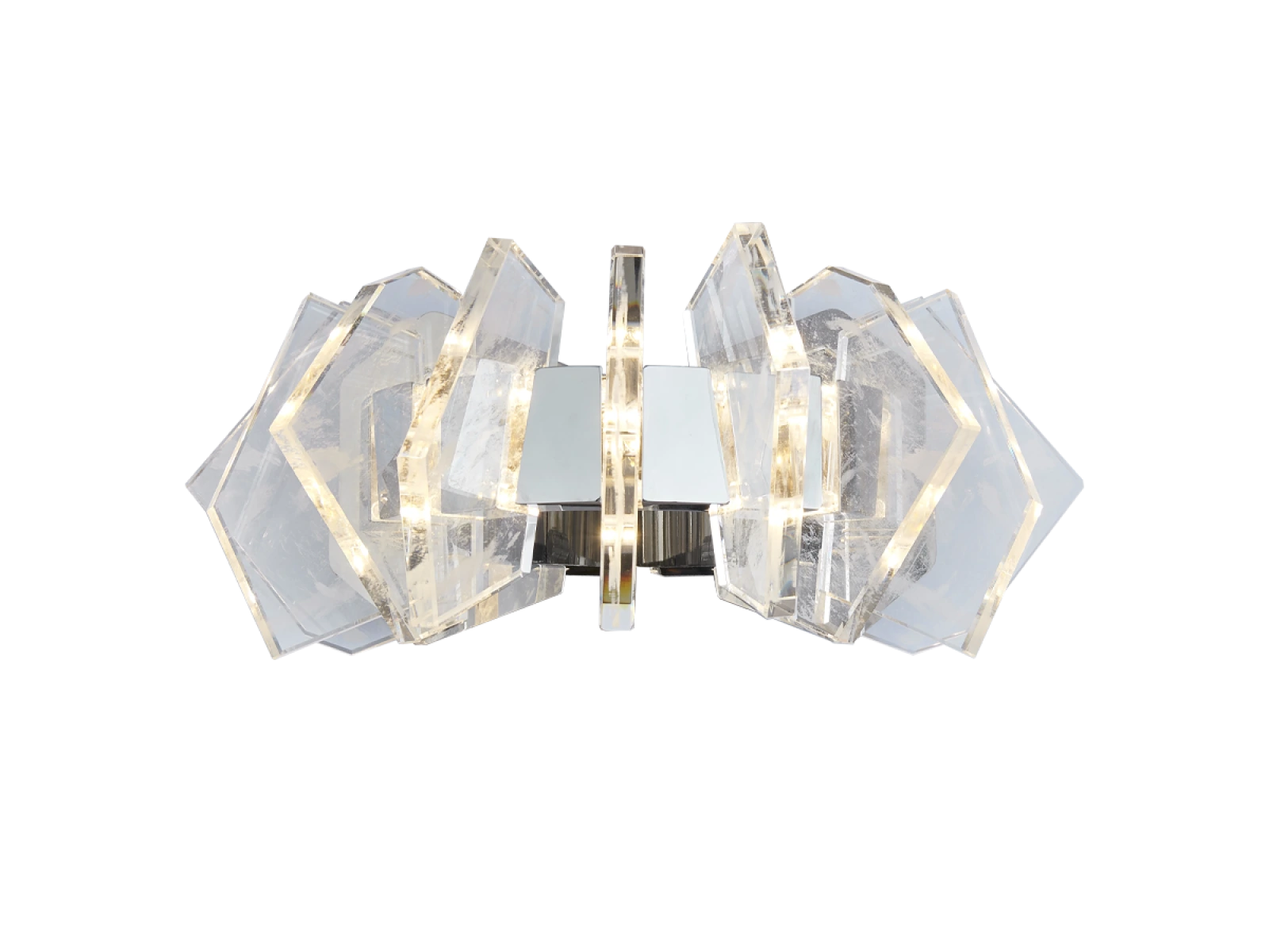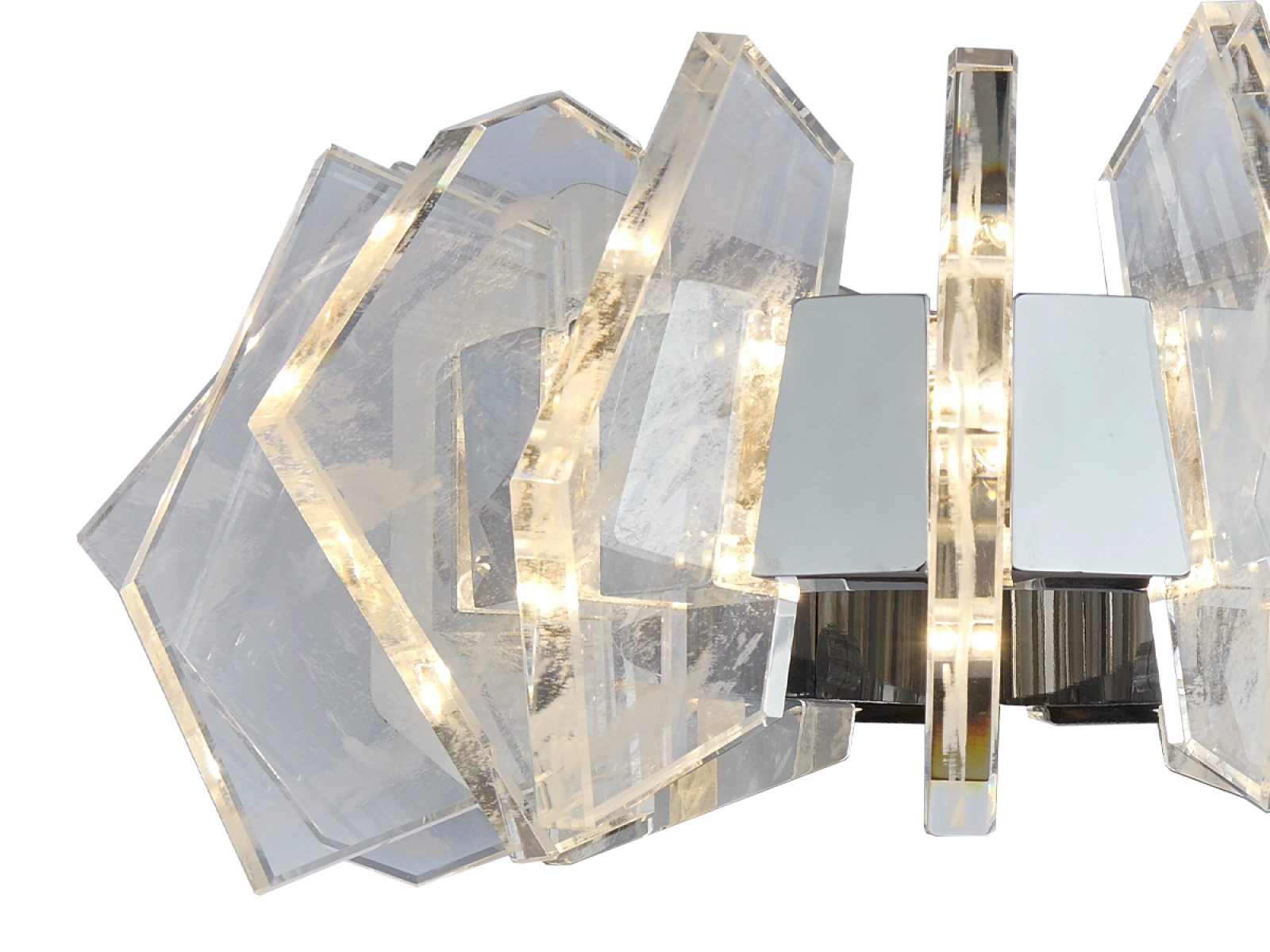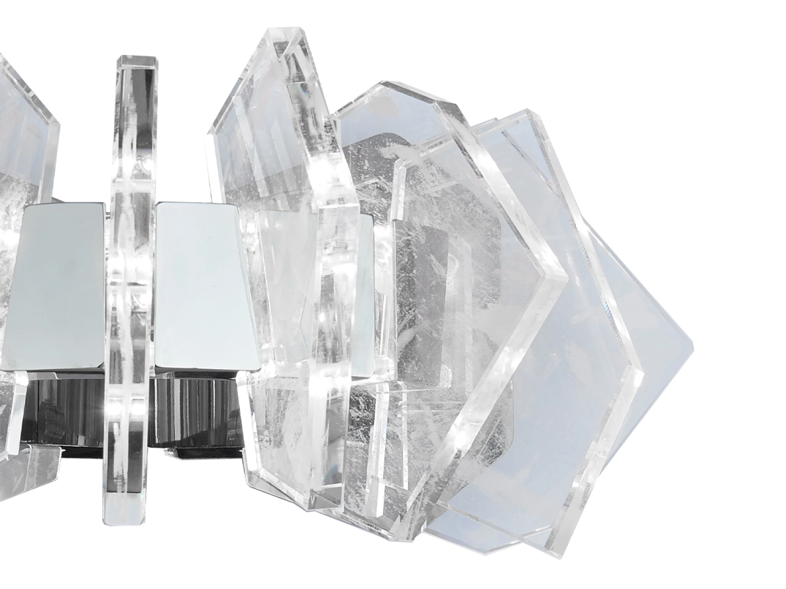 La struttura è realizzata in acciaio di alta qualità con finitura cromata e completata da originali elementi in cristallo tagliati con precisione che garantiscono un'intensa rifrazione e riflessione della luce. Il risultato è un ambiente luminoso di lusso con un effetto decorativo distintivo che sottolineerà il carattere di interni moderni e rappresentativi.