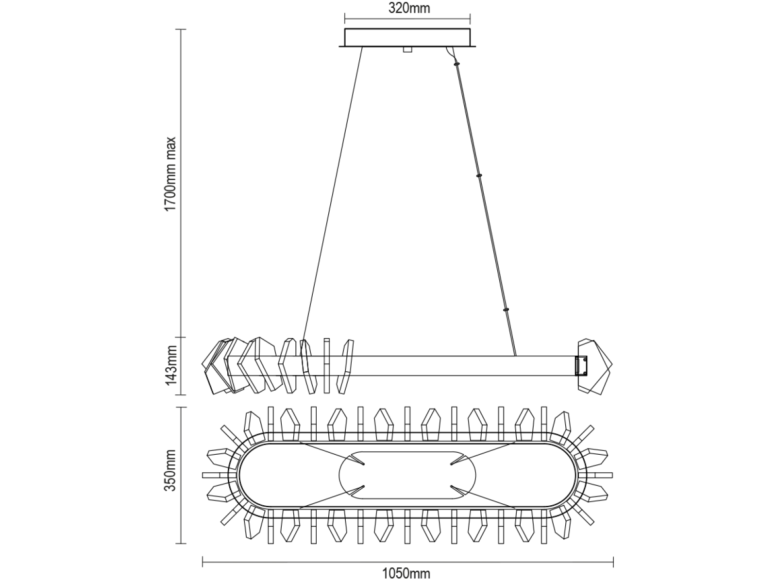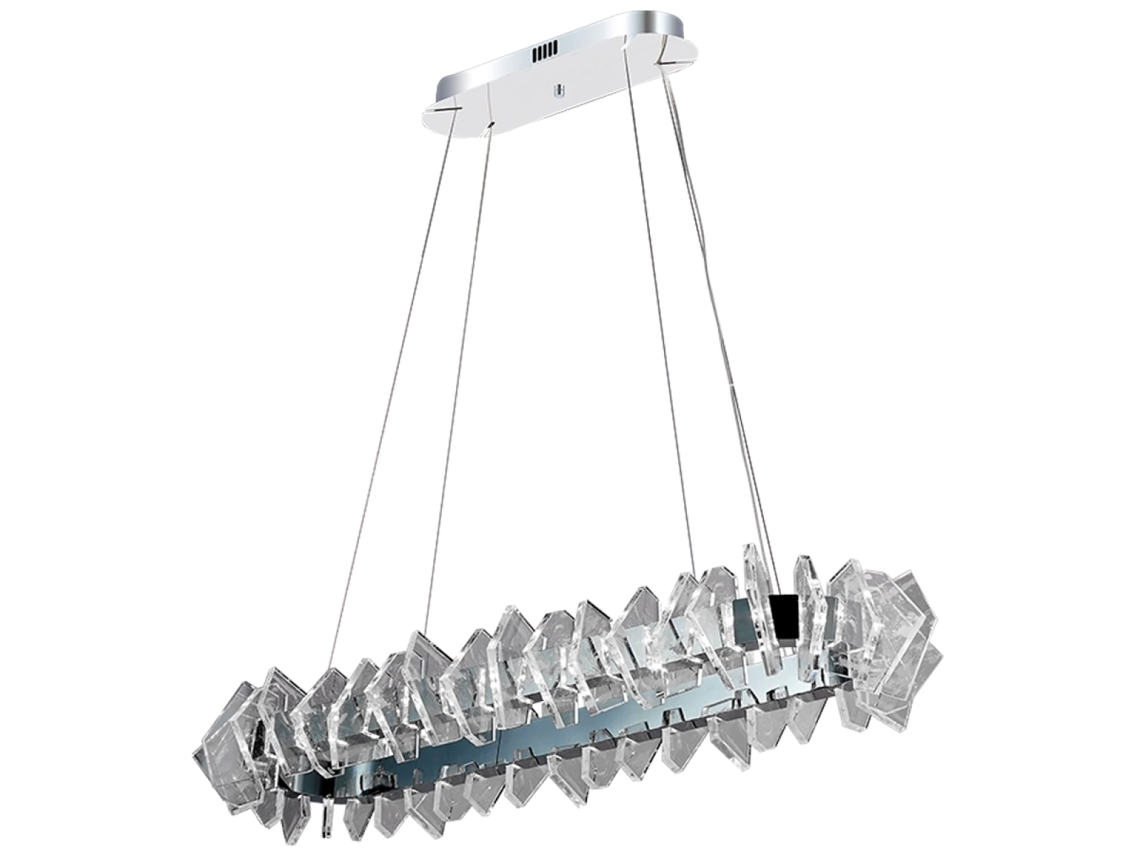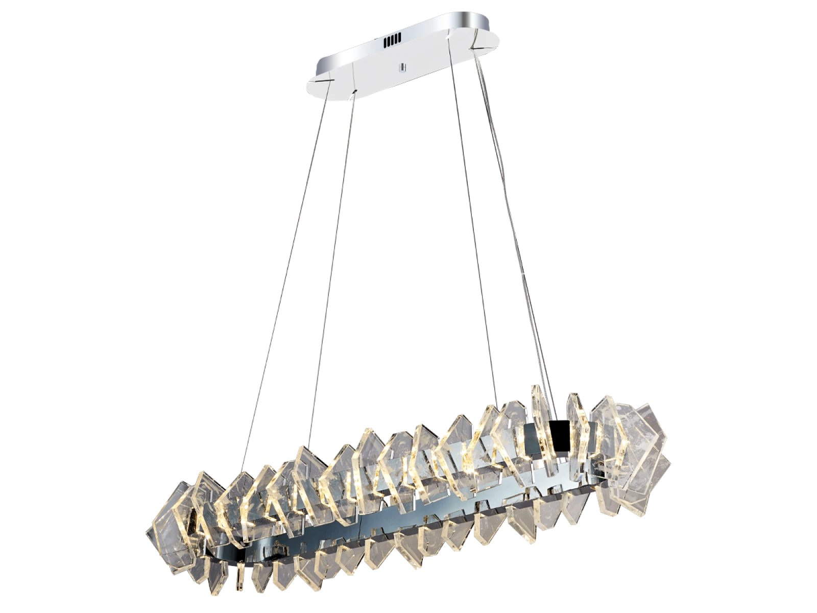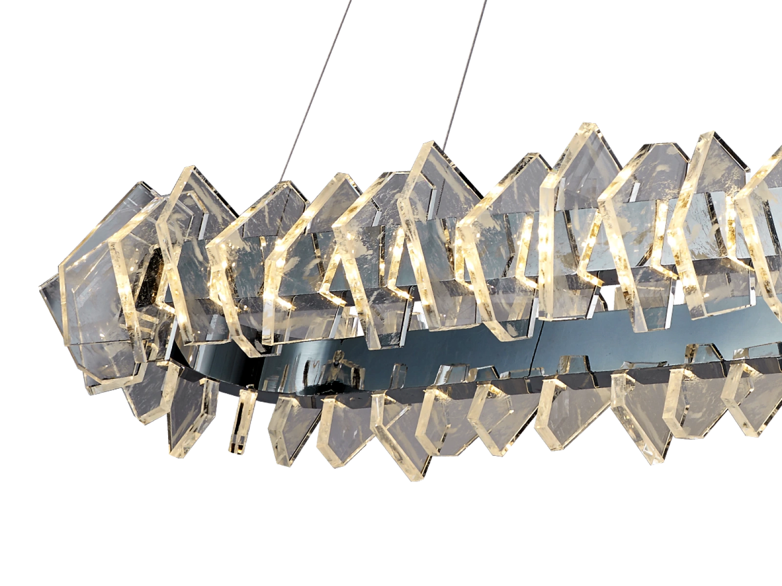 La struttura è realizzata in acciaio di alta qualità con finitura cromata e completata da originali elementi in cristallo tagliati con precisione che garantiscono un'intensa rifrazione e riflessione della luce. Il risultato è un ambiente luminoso di lusso con un effetto decorativo distintivo che sottolineerà il carattere di interni moderni e rappresentativi.